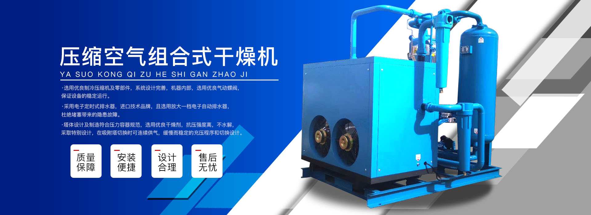 本公司系中國(guó)科學(xué)院、重鋼院、機(jī)電技術(shù)設(shè)計(jì)院、氣動(dòng)技術(shù)研究所等相關(guān)專家合作的具有雄厚技術(shù)力量的高科技實(shí)體,是一個(gè)專業(yè)從事各種氣體干燥凈化及分離純化設(shè)備研究開(kāi)發(fā)及推廣應(yīng)用的高科技公司。公司積多年對(duì)壓縮空氣凈化設(shè)備的生產(chǎn)技術(shù)和銷售經(jīng)驗(yàn),并在消化吸收國(guó)外先進(jìn)技術(shù)的基礎(chǔ)上,結(jié)合國(guó)內(nèi)實(shí)際工況特點(diǎn),研制出適合國(guó)內(nèi)外廣大用戶的“滬盛”牌HSD系列壓縮空氣冷凍式干燥機(jī)、吸附式干燥機(jī)、后部冷卻器、預(yù)冷機(jī)組、工業(yè)用冷水機(jī)組和HF系列壓縮空氣高效精密過(guò)濾器(國(guó)產(chǎn)濾殼,美國(guó)漢克森HANKISON濾芯)等13大系列計(jì)300多種規(guī)格產(chǎn)品。并且新研發(fā)出燥式干器, 廣泛應(yīng)用于電力、冶金、電子、機(jī)械、石油、化工、汽車制造、紡織、化纖、輕工、造紙、橡膠、儀表、食品、空氣、卷煙、生物、醫(yī)藥、日化等行業(yè),在國(guó)內(nèi)同行業(yè)中一直處于領(lǐng)先地位。